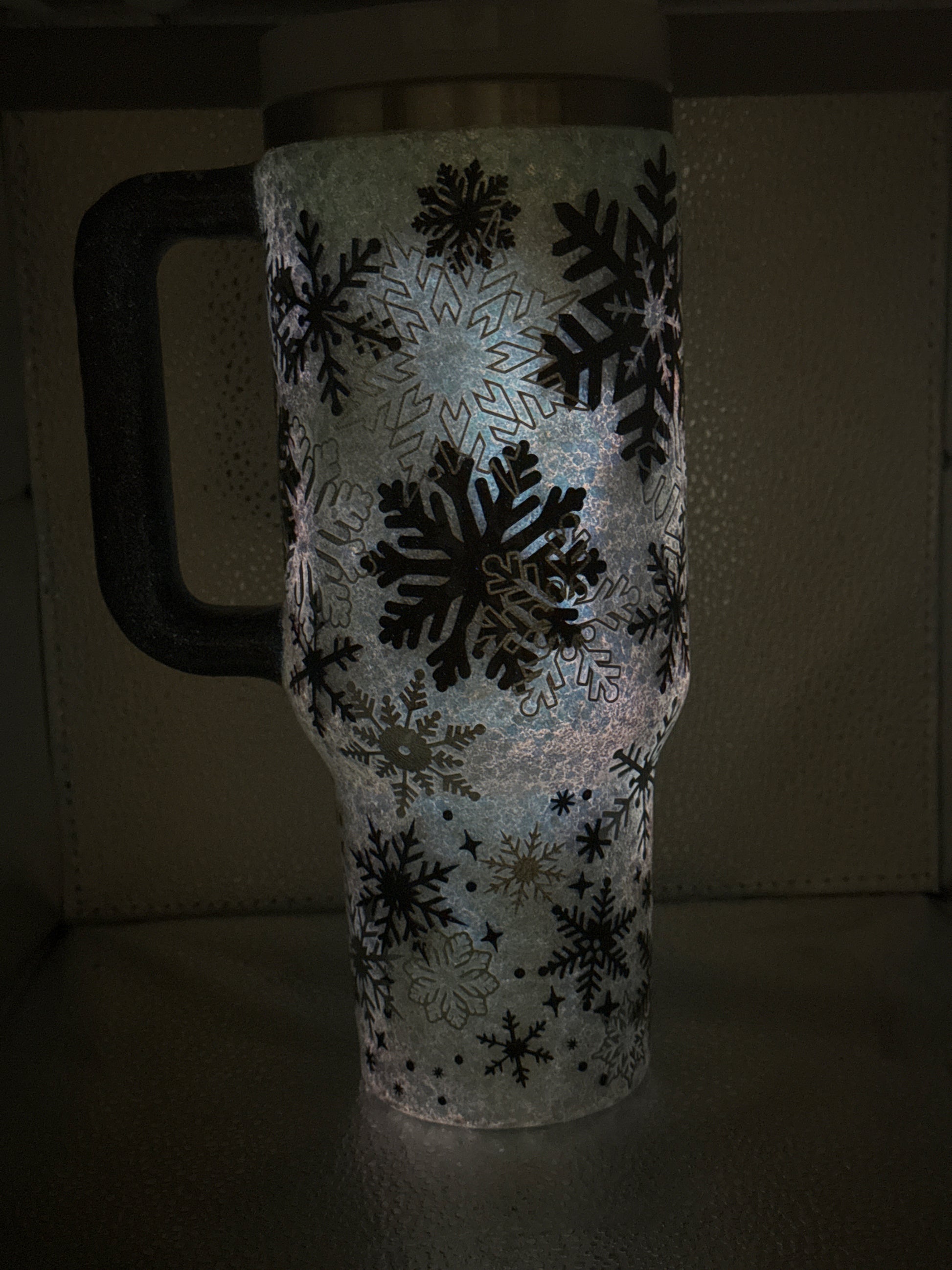 40oz tumbler glow black and white snowflake *this item was handmade and could have flaws/imperfections*