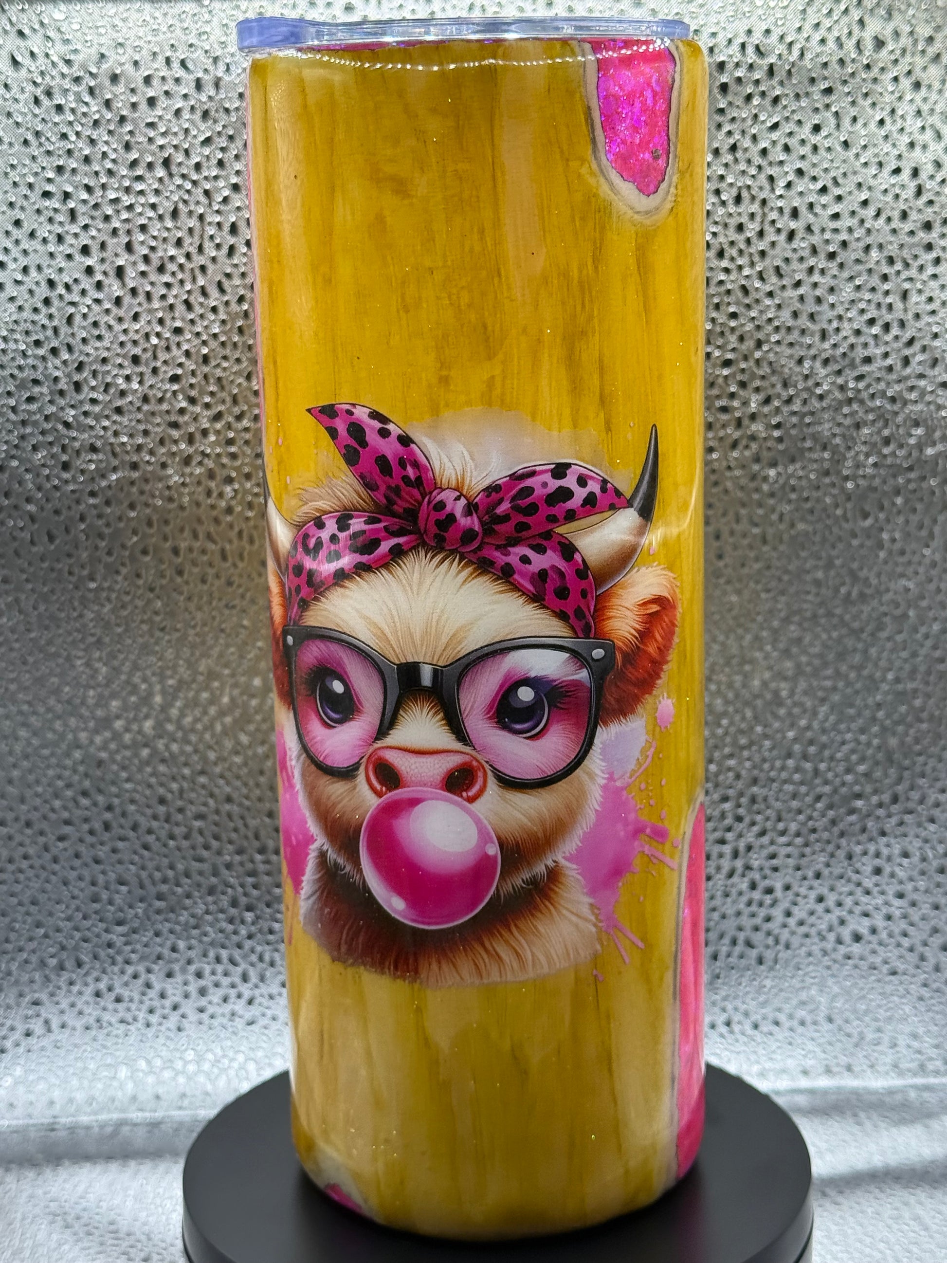 20oz tumbler yellow pink cow cup wood grain *this item was handmade may have flaws/imperfection*